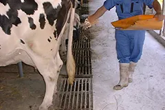 牛の場合、1頭当り5~7g/日を牛床全面やふん尿溝等に散布します。