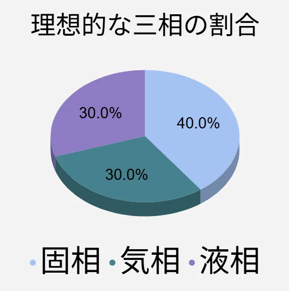 内部は固相(粒子・有機物)、液相(水)、気相(空気)の三相構造です。この三者の割合が生育を左右し、固相が多すぎると窒息、液相が多すぎると過湿、気相が少ないと根が呼吸できません。目標は、適度に団粒化した“スポンジ状”の土です。スポンジのような空隙があると、水はけと水もち、通気が両立し、根は深く広く伸びていきます。