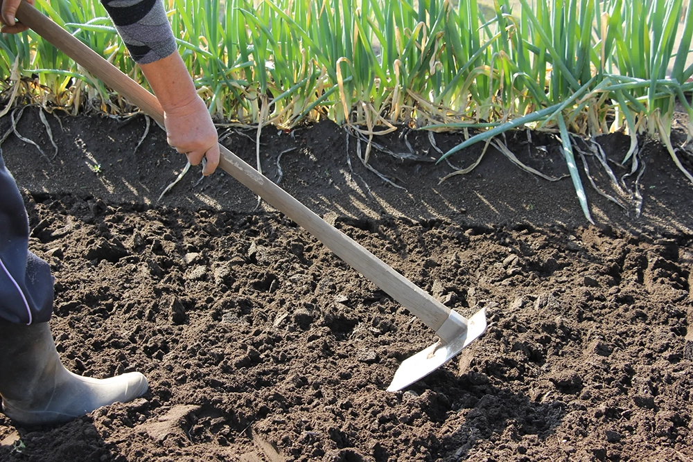 三相のバランスを整える要(かなめ)で、仕上がりが根張りの可否をほぼ決めると言っても過言ではありません。大規模圃場ならプラウで反転し、ハローで砕土・整地します。家庭菜園なら鍬(平鍬・唐鍬・備中鍬)やスコップ、レーキを使い、深さ20~30cmを目安に土をふかふかになるまで耕します。粘土質で重い畑は排水性を意識し、畝立て前に粗起こし→数日乾かす→再度砕土の工程を挟むと効果的です。