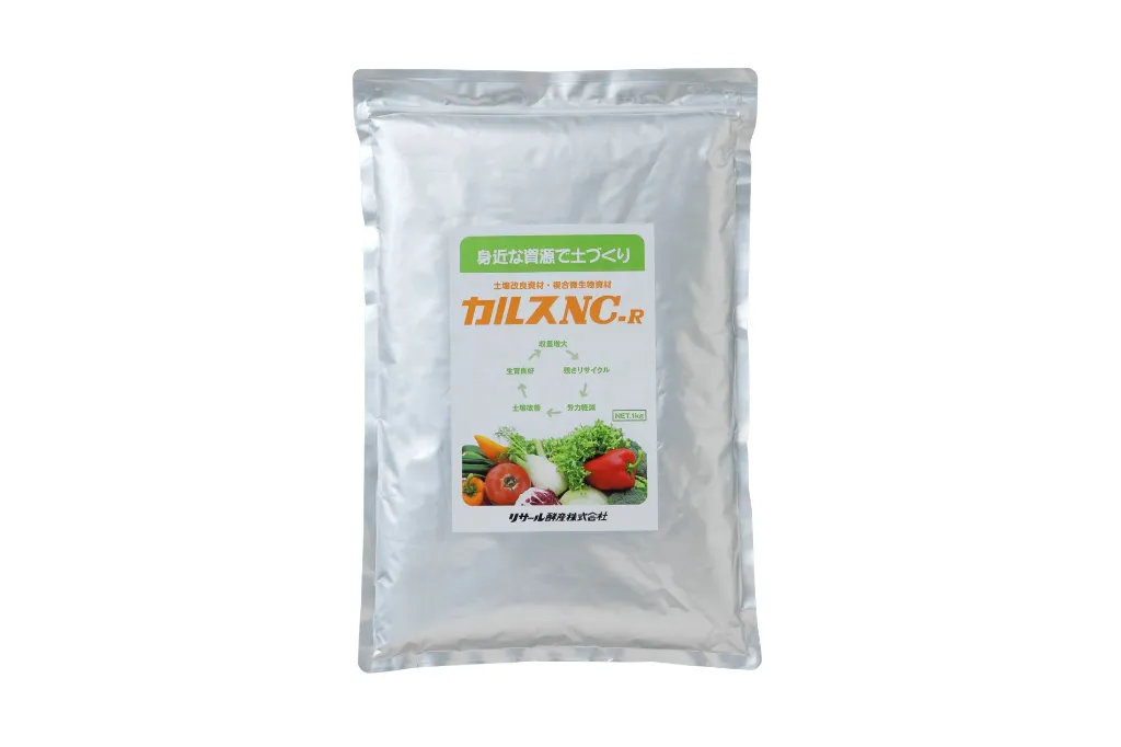 家庭菜園で扱いやすいのが、リサール酵産のカルスNC-R 1kgです。量が多すぎる資材は使い切れない不安がありますが、1kgタイプなら初めてでも試しやすく、家庭菜園の広さに合いやすいです。カルスNC-Rは、単に有機物を分解するだけでなく、団粒構造づくり、保肥力の向上、病害の出にくい土壌環境づくりまで見据えた微生物資材です。