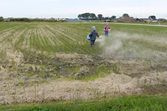 稲刈り後の水田に、稲わらや切り株の上へ均一に施用してください。