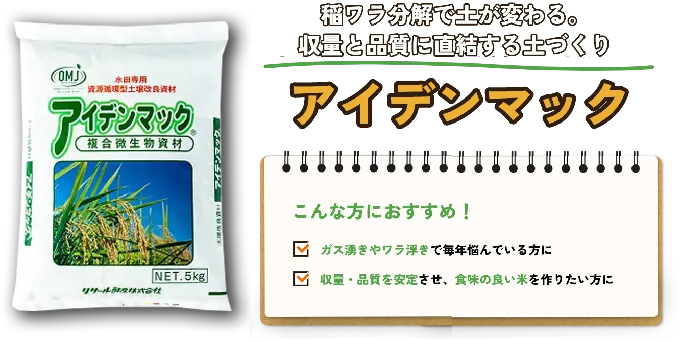はい、アイデンカルスはガス湧きや浮きワラの対策にも有効です。土壌中の有機物を微生物の力で分解・発酵させることで、ガスの発生を抑え、ワラの浮き上がりを軽減します。結果として、作物の根張りを助け、安定した生育環境を整えることができます。